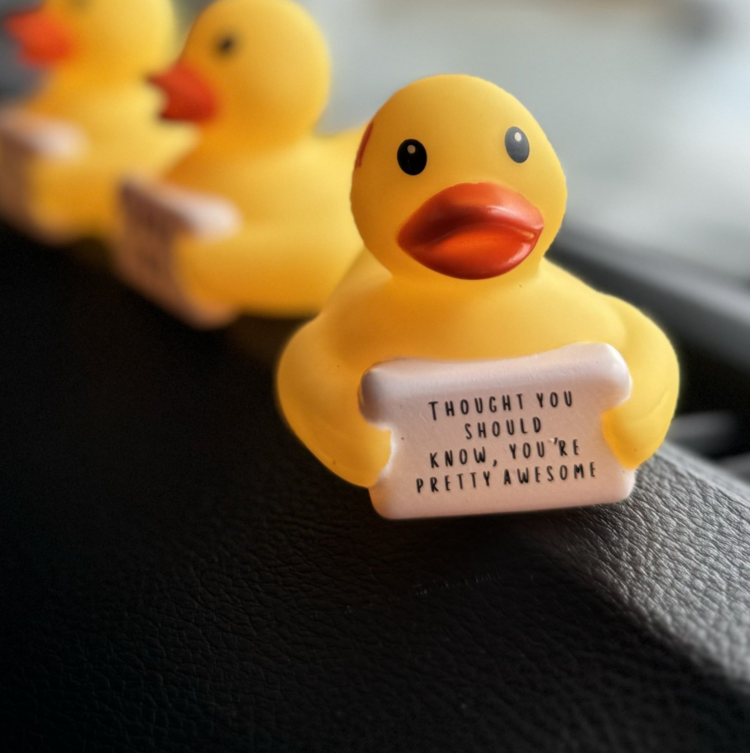 Meet Ducky Notes — delightful little rubber ducks each featuring a different uplifting message. These adorable ducks are perfect for placing around your home, car, workspace, or gifting to others as a fun way to spread daily inspiration and joy.