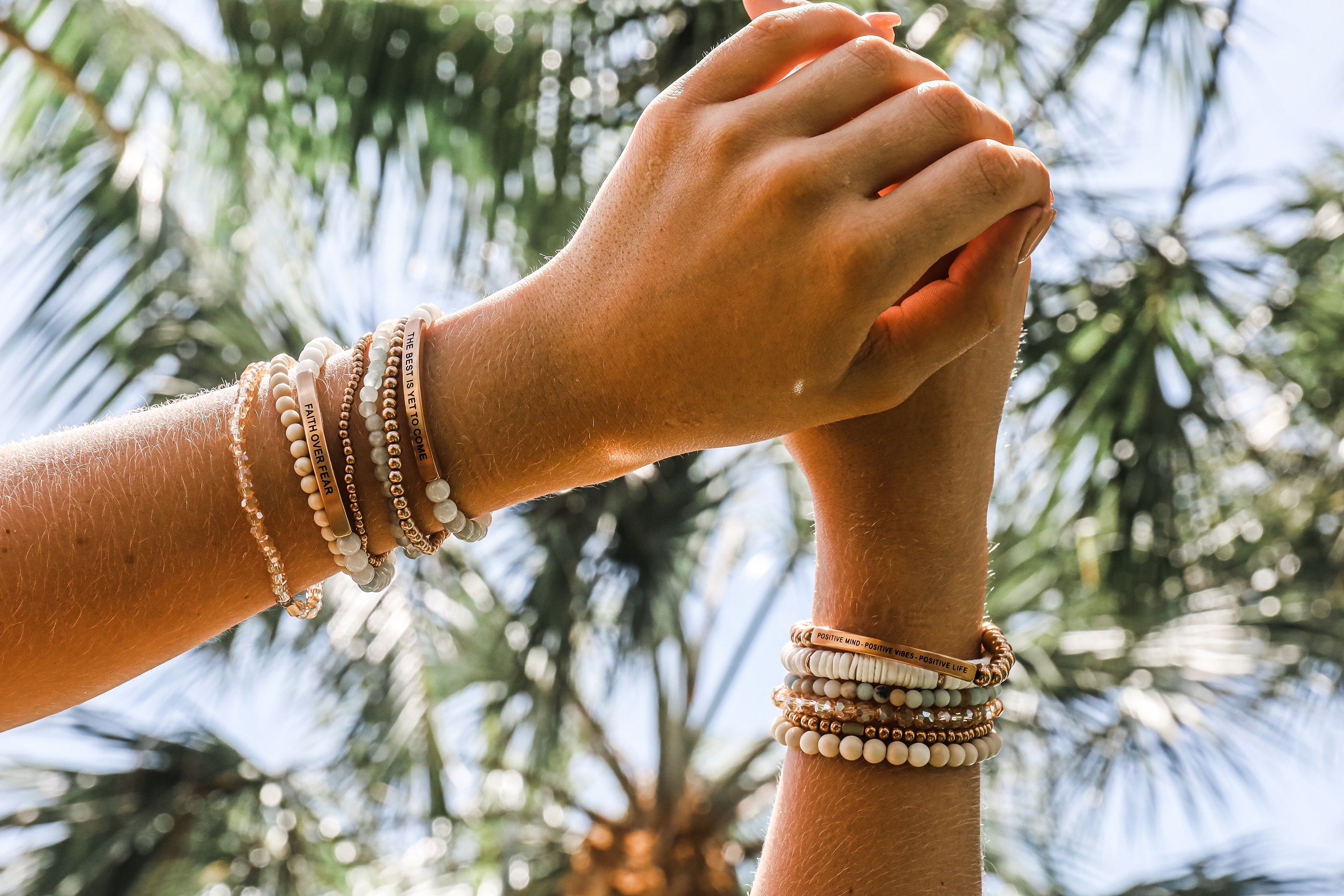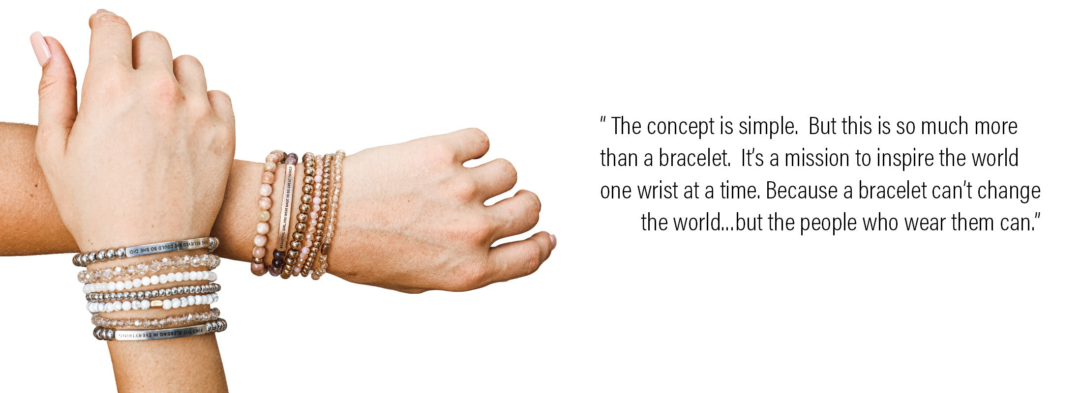 We believe if we each can sprinkle a little kindness, hope and love everyday, it will create a ripple effect of positivity around each of us that will change the world for good. We created three collections of positive engravings to partner with people in their intention to make a difference both in their own lives and the lives of the people around them. One small reminder you can wear on your wrist to inspire you throughout your day.