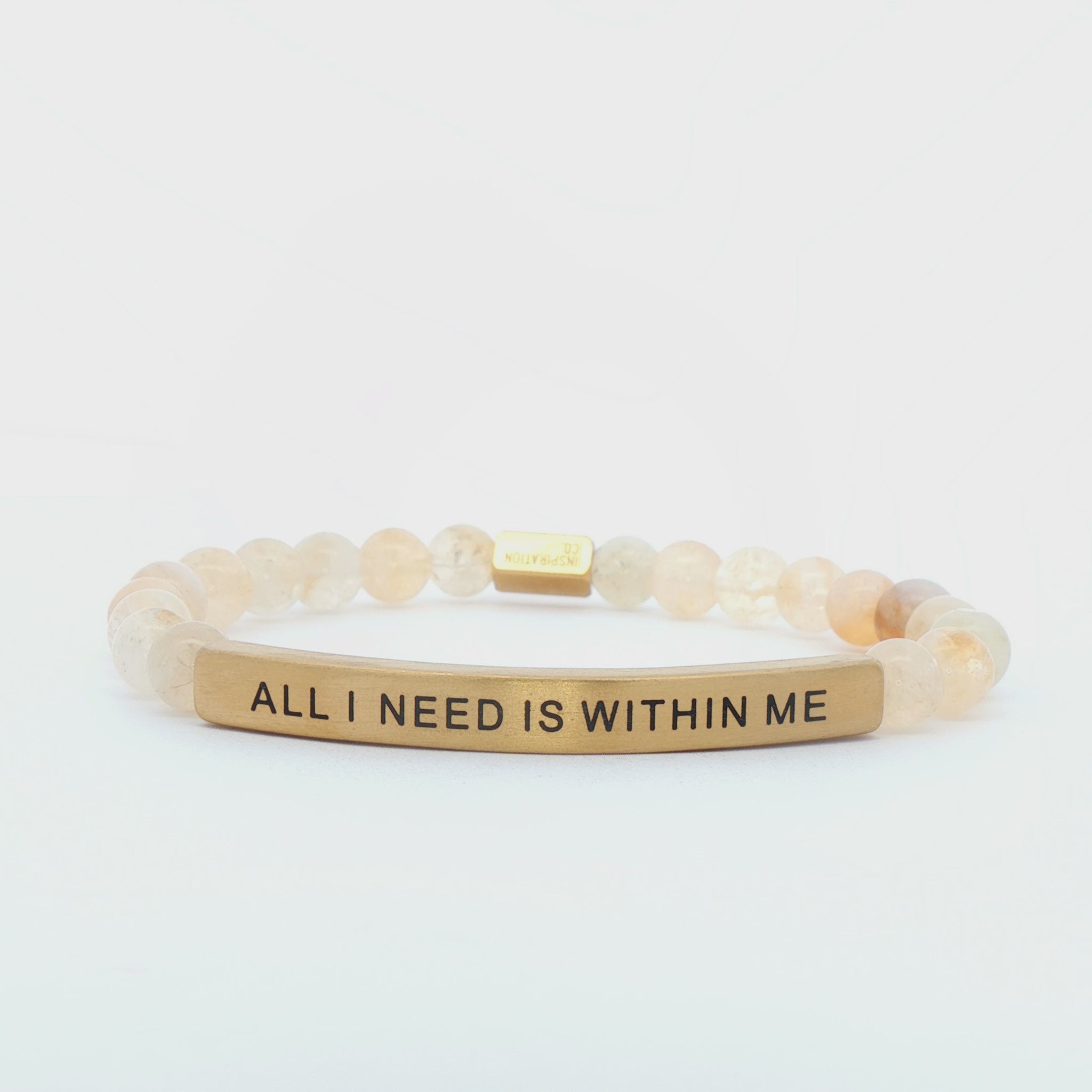 - Inspire Me Bracelets are beautiful reminders that are crafted with earth stone beads and featuring a message of inspiration engraved on a stainless-steel bar. Wear them throughout the day to fill your mind with inspiration.